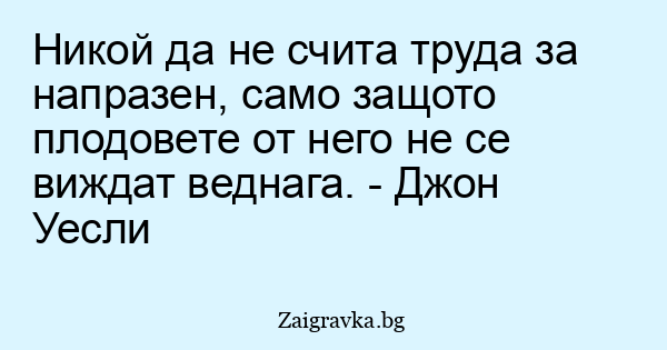 Никой да не счита труда за напразен, само защото плодовете от него не се виждат веднага. - Джон Уесли