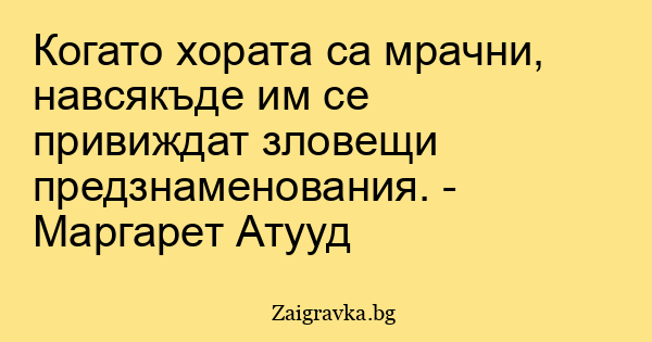 Когато хората са мрачни, навсякъде им се привиждат зловещи предзнаменования. - Маргарет Атууд