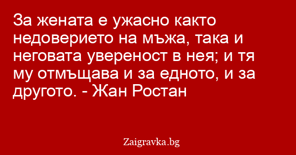За жената е ужасно както недоверието на мъжа, така и неговата увереност в нея; и тя му отмъщава и за едното, и за другото. - Жан Ростан