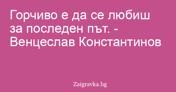 Горчиво е да се любиш за последен път. - Венцеслав Константинов
