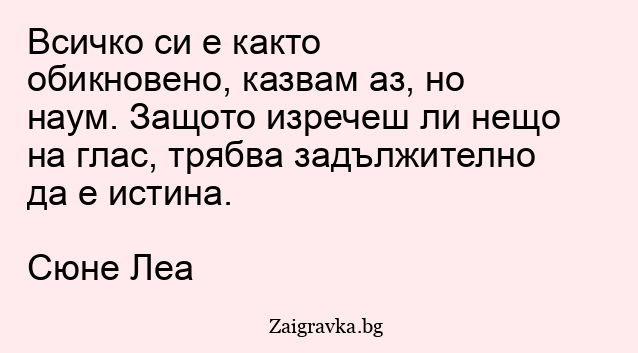 Всичко си е както обикновено, казвам аз, но наум. Защото изречеш ли нещо на глас, трябва задължително да е истина.