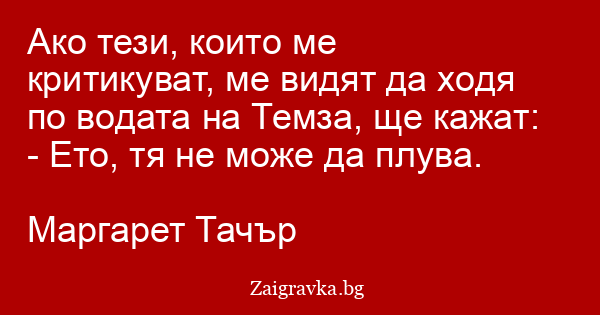 Ако тези, които ме критикуват, ме видят да ходя по водата на Темза, ще кажат: