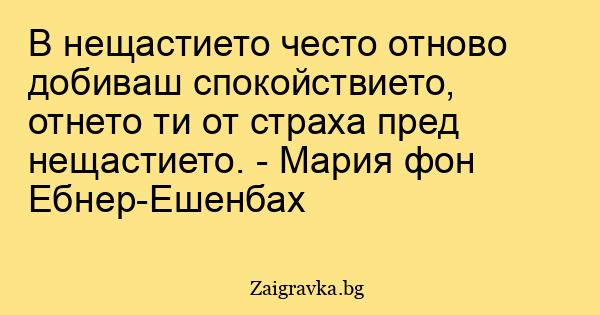 В нещастието често отново добиваш спокойствието, отнето ти от страха пред нещастието. - Мария фон Ебнер-Ешенбах