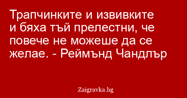 Трапчинките и извивките и бяха тъй прелестни, че повече не можеше да се желае. - Реймънд Чандлър
