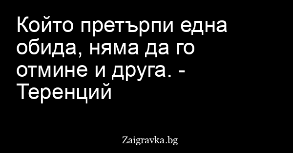 Който претърпи една обида, няма да го отмине и друга. - Теренций