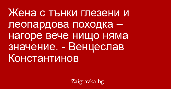 Жена с тънки глезени и леопардова походка – нагоре вече нищо няма значение. - Венцеслав Константинов