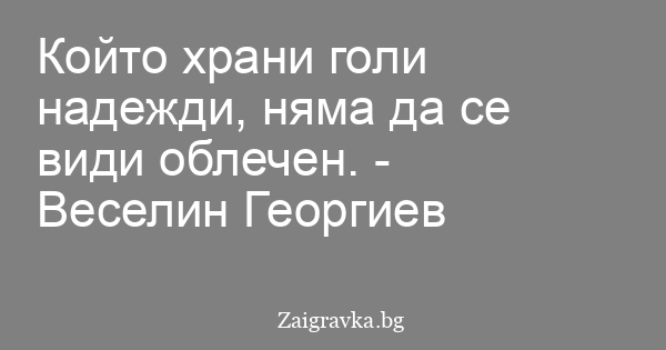 Който храни голи надежди, няма да се види облечен. - Веселин Георгиев