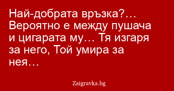 Най-добрата връзка?… Вероятно е между пушача и цигарата му… Тя изгаря за него, Той умира за нея…