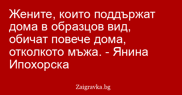 Жените, които поддържат дома в образцов вид, обичат повече дома, отколкото мъжа. - Янина Ипохорска