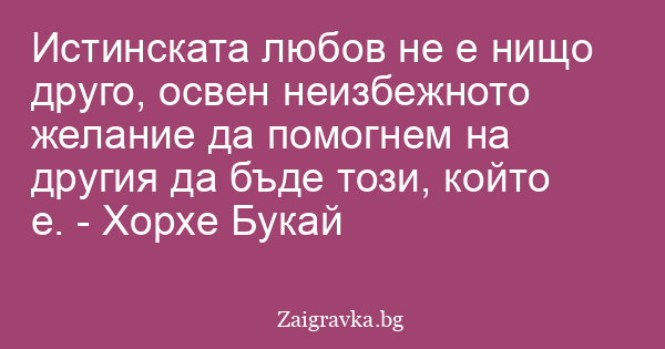 Истинската любов не е нищо друго, освен неизбежното желание да помогнем на другия да бъде този, който е. - Хорхе Букай