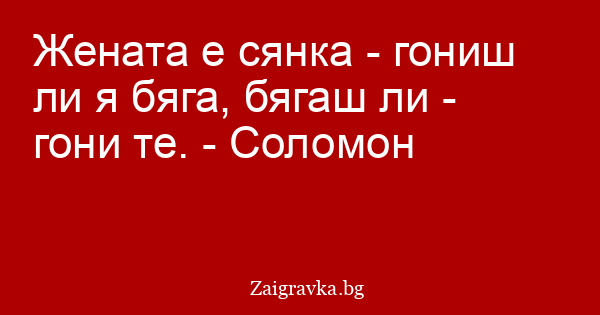 Жената е сянка - гониш ли я бяга, бягаш ли - гони те. - Соломон