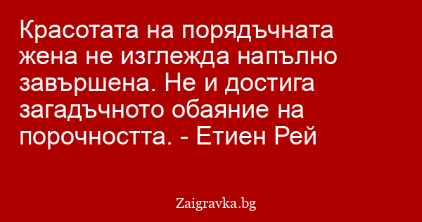 Красотата на порядъчната жена не изглежда напълно завършена. Не и достига загадъчното обаяние на порочността. - Етиен Рей