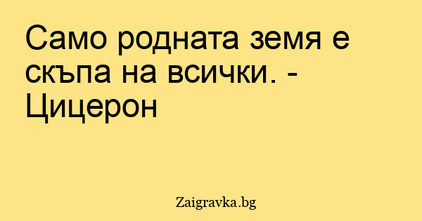 Само родната земя е скъпа на всички. - Цицерон