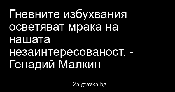 Гневните избухвания осветяват мрака на нашата незаинтересованост. - Генадий Малкин
