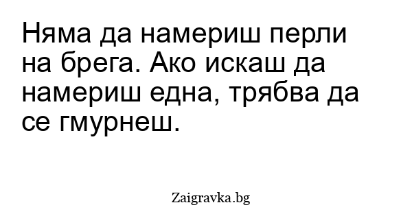 Няма да намериш перли на брега. Ако искаш да намериш една, трябва да се гмурнеш.
