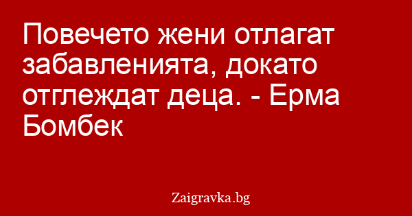 Повечето жени отлагат забавленията, докато отглеждат деца. - Ерма Бомбек