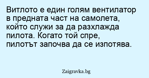 Витлото е един голям вентилатор в предната част на самолета, който служи за да разхлажда пилота. Когато той спре, пилотът започва да се изпотява.