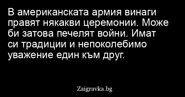 В американската армия винаги правят някакви церемонии. Може би затова печелят войни. Имат си традиции и непоколебимо уважение един към друг.