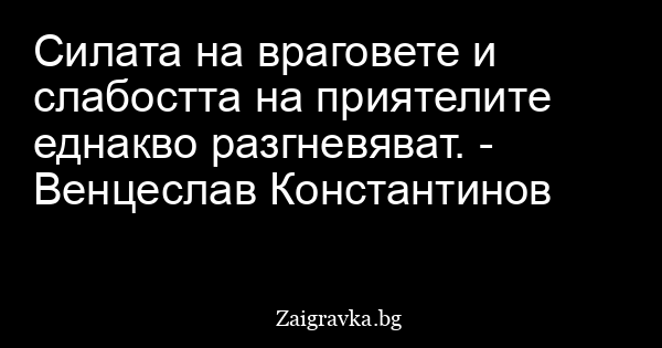 Силата на враговете и слабостта на приятелите еднакво разгневяват. - Венцеслав Константинов