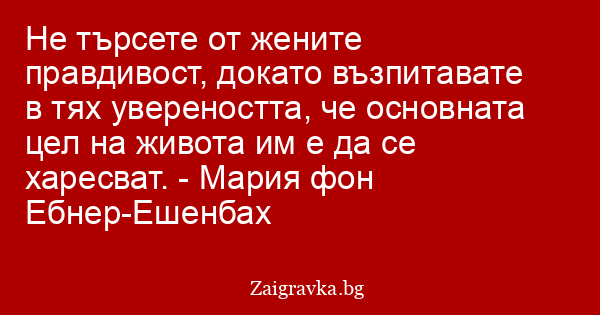 Не търсете от жените правдивост, докато възпитавате в тях увереността, че основната цел на живота им е да се харесват. - Мария фон Ебнер-Ешенбах