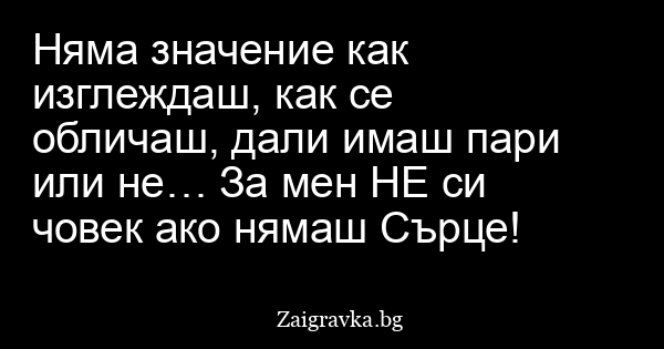Няма значение как изглеждаш, как се обличаш, дали имаш пари или не… За мен НЕ си човек ако нямаш Сърце!