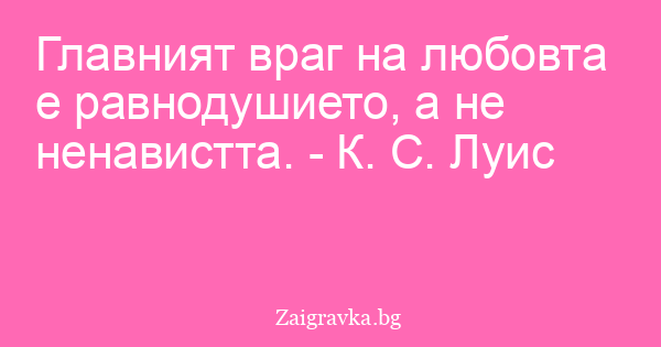 Главният враг на любовта е равнодушието, а не ненавистта. - К. С. Луис