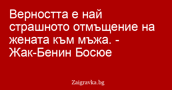 Верността е най страшното отмъщение на жената към мъжа. - Жак-Бенин Босюе