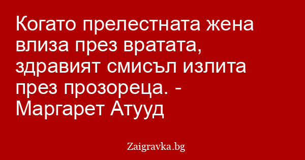 Когато прелестната жена влиза през вратата, здравият смисъл излита през прозореца. - Маргарет Атууд