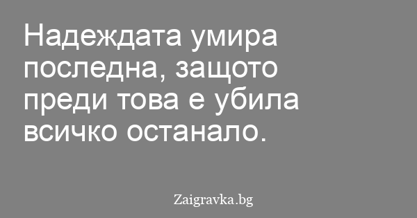 Надеждата умира последна, защото преди това е убила всичко останало.