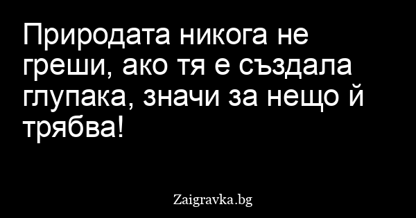 Природата никога не греши, ако тя е създала глупака, значи за нещо й трябва!