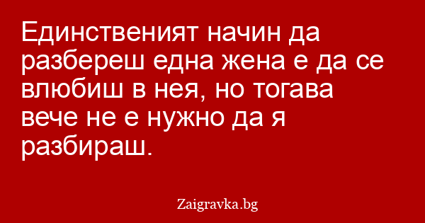 Единственият начин да разбереш една жена е да се влюбиш в нея, но тогава вече не е нужно да я разбираш.