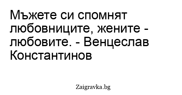 Мъжете си спомнят любовниците, жените - любовите. - Венцеслав Константинов