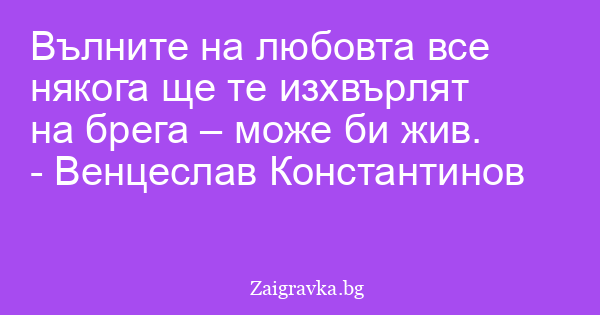Вълните на любовта все някога ще те изхвърлят на брега – може би жив. - Венцеслав Константинов