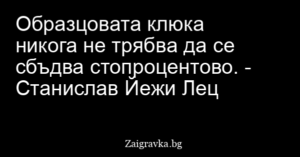Образцовата клюка никога не трябва да се сбъдва стопроцентово. - Станислав Йежи Лец