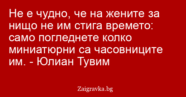 Не е чудно, че на жените за нищо не им стига времето: само погледнете колко миниатюрни са часовниците им. - Юлиан Тувим