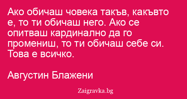 Ако обичаш човека такъв, какъвто е, то ти обичаш него. Ако се опитваш кардинално да го промениш, то ти обичаш себе си. Това е всичко.