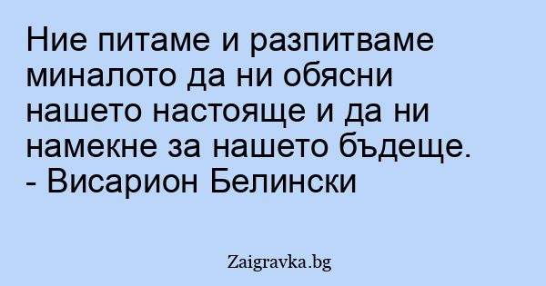 Ние питаме и разпитваме миналото да ни обясни нашето настояще и да ни намекне за нашето бъдеще. - Висарион Белински