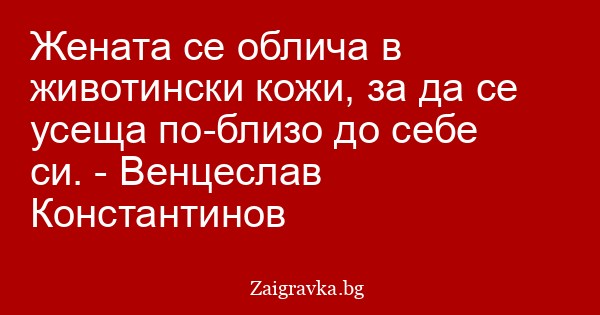 Жената се облича в животински кожи, за да се усеща по-близо до себе си. - Венцеслав Константинов