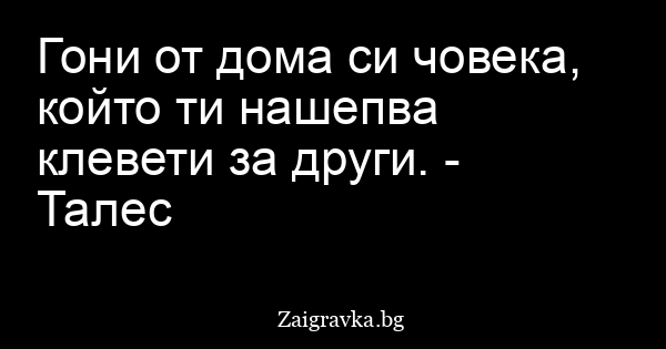 Гони от дома си човека, който ти нашепва клевети за други. - Талес