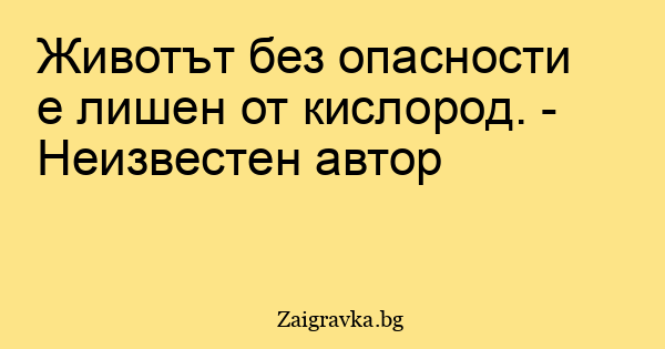 Животът без опасности е лишен от кислород. - Неизвестен автор