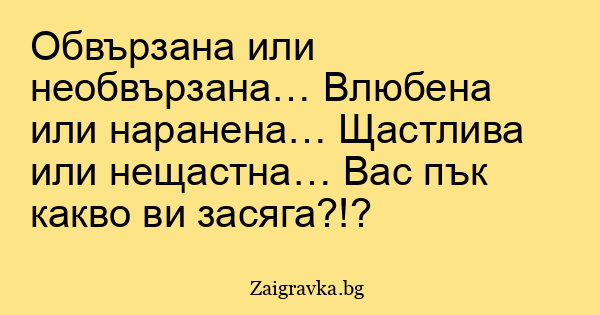 Обвързана или необвързана… Влюбена или наранена… Щастлива или нещастна… Вас пък какво ви засяга?!?