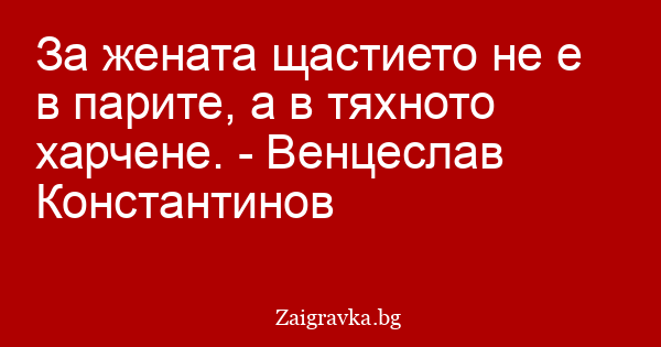 За жената щастието не е в парите, а в тяхното харчене. - Венцеслав Константинов