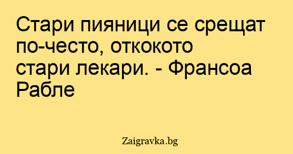 Стари пияници се срещат по-често, откокото стари лекари. - Франсоа Рабле