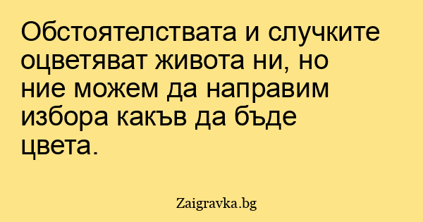 Обстоятелствата и случките оцветяват живота ни, но ние можем да направим избора какъв да бъде цвета.