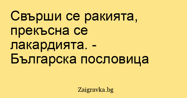 Свърши се ракията, прекъсна се лакардията. - Българска пословица