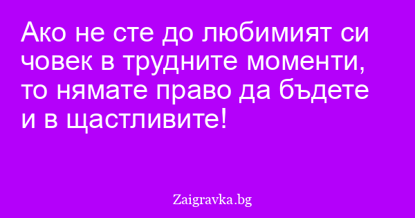 Ако не сте до любимият си човек в трудните моменти, то нямате право да бъдете и в щастливите!