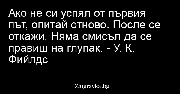 Ако не си успял от първия път, опитай отново. После се откажи. Няма смисъл да се правиш на глупак. - У. К. Фийлдс