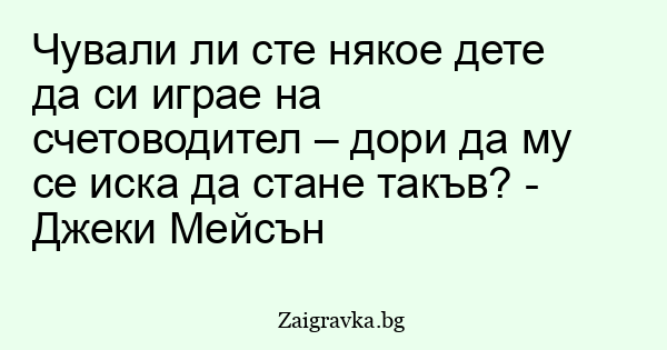 Чували ли сте някое дете да си играе на счетоводител – дори да му се иска да стане такъв? - Джеки Мейсън