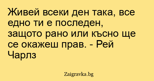 Живей всеки ден така, все едно ти е последен, защото рано или късно ще се окажеш прав. - Рей Чарлз