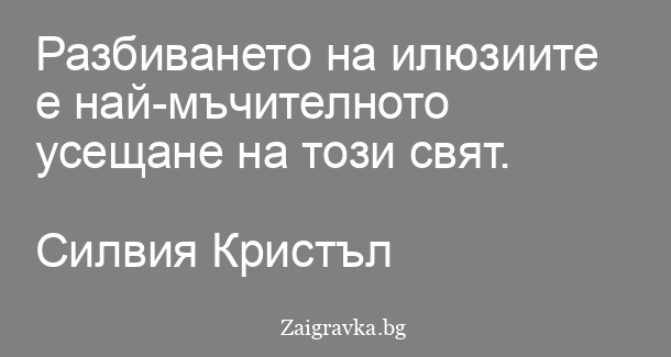 Разбиването на илюзиите е най-мъчителното усещане на този свят.